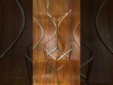 I received Honorable Mention for my first welding sculpture titled Foreshadow, in which I used 3' x 3' mirrored acrylic to complete the welded half cubic form in the center. The aluminum frame is curved downwards in such a way to warp the steel objects in the reflection, and also to discourage "selfies." The protruding steel mimics the bending frame, and the reflection of the distorted cube.
